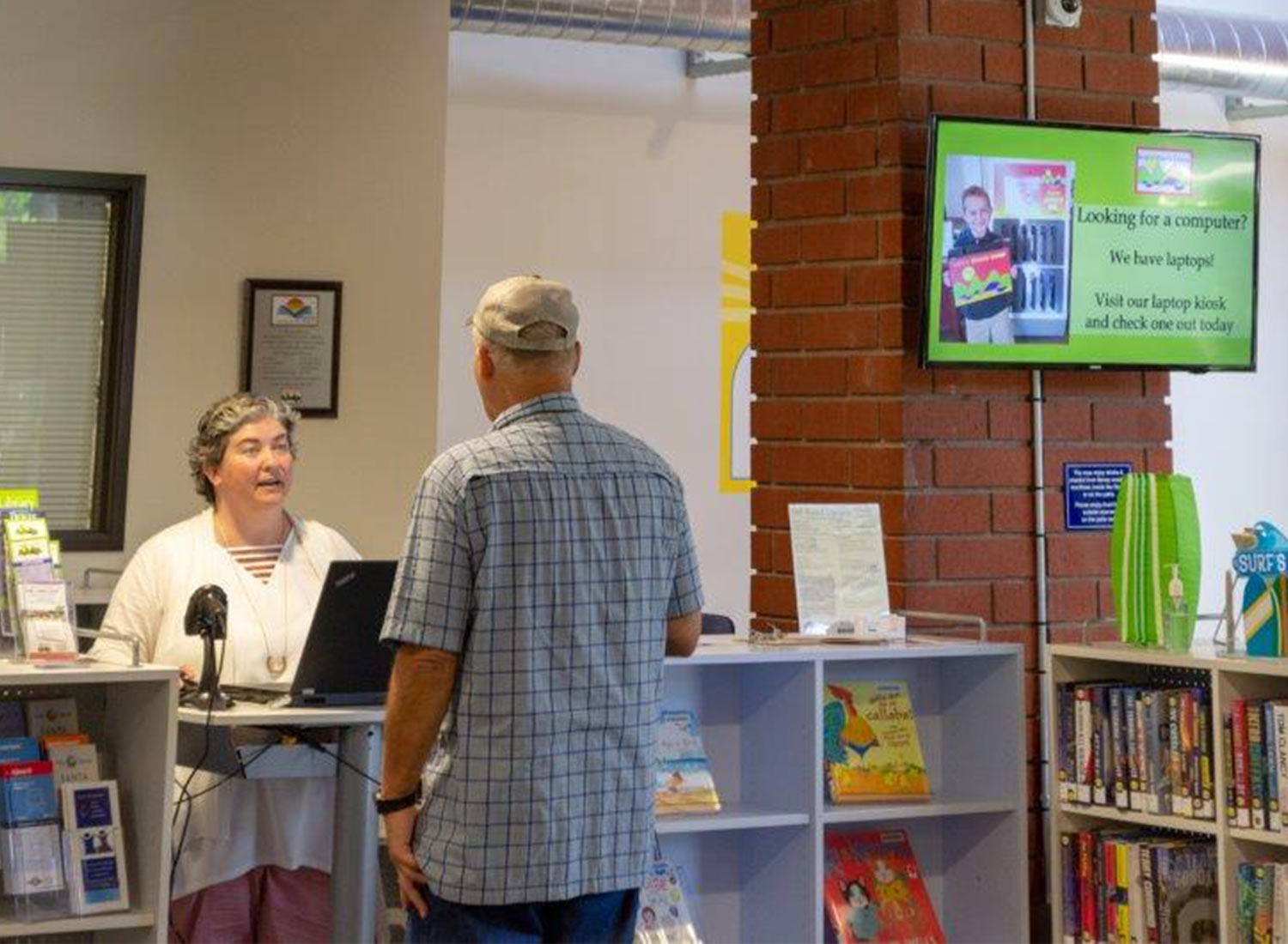 The library car park is shared with the Social Security office, other businesses, and a café, so often, patrons happen upon the branch by accident. However, once they’ve made the discovery, they often become regular users. One such user was a ghostwriter who used open+ hours to finish his novel. He would come in during early access hours to write in the quiet and then stay into regular staffed hours to get help with research and chat with the staff.