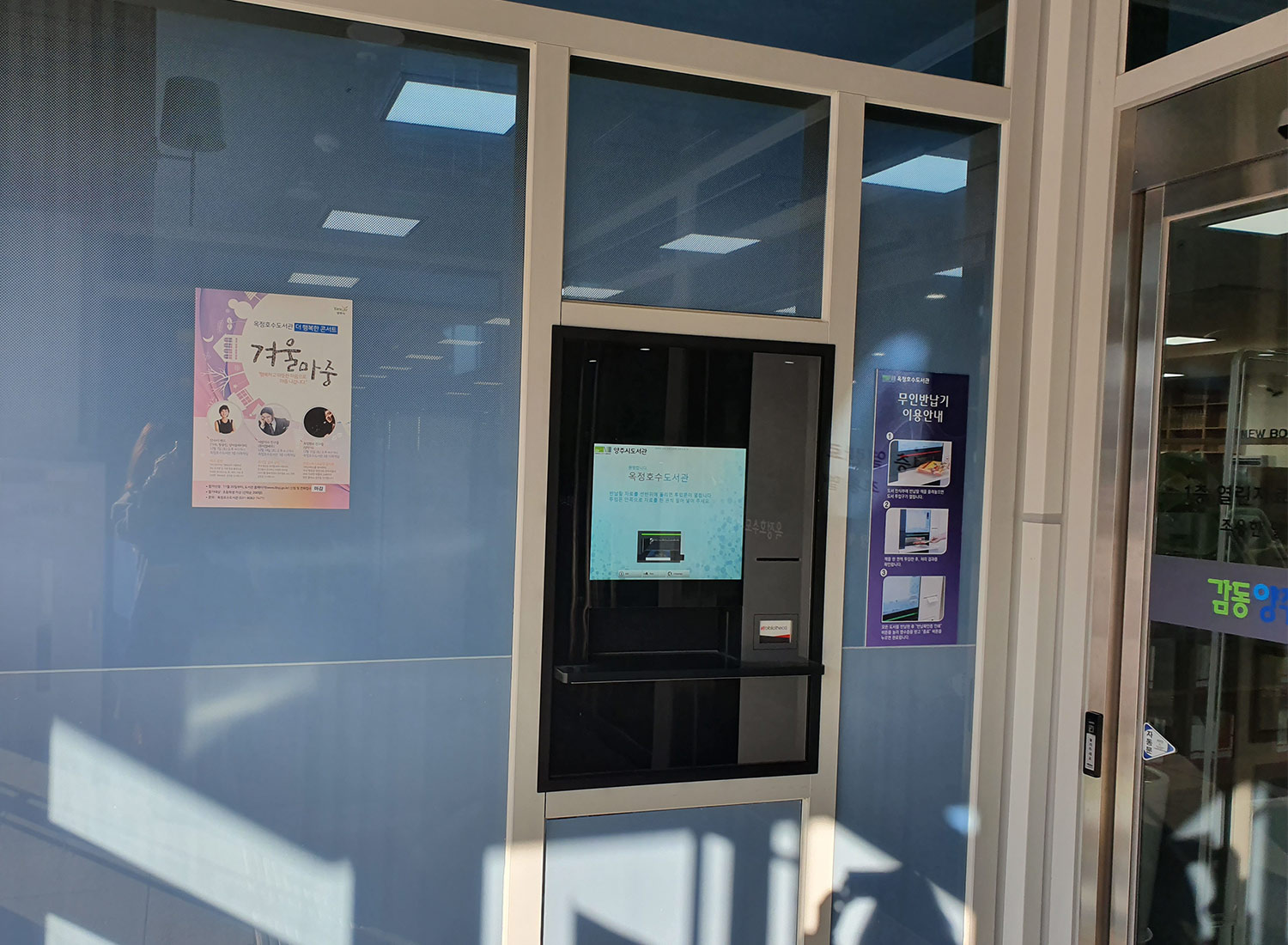 보통 반납된 도서는 백룸이라고 불리우는 곳에 반납된 책들을 정리하거나 분류하기 위해 별도의 공간을 두고있지만, 옥정호수도서관은 비블리오티카의 분류시스템을 외국의 사례처럼 이용자가 직접 볼 수 있는 공간에 노출시켜 이용자들의 흥미 유발은 물론, 이로 인해 확보된 공간을 이용자들게 더 제공할 수 있게 되어 더 큰 만족감을 주고 있습니다. 처음 분류시스템의 노출을 제안할 당시 이용자들이 기계를 만지거나 분류된 도서를 함부러 가져가는 점을 일부 우려하였지만 실제로는 그런 경우는 거의 없고 이용자들이 반납된 도서가 자동으로 분류되는 모습이 이용자들에 신선한 볼거리를 주고 있습니다.