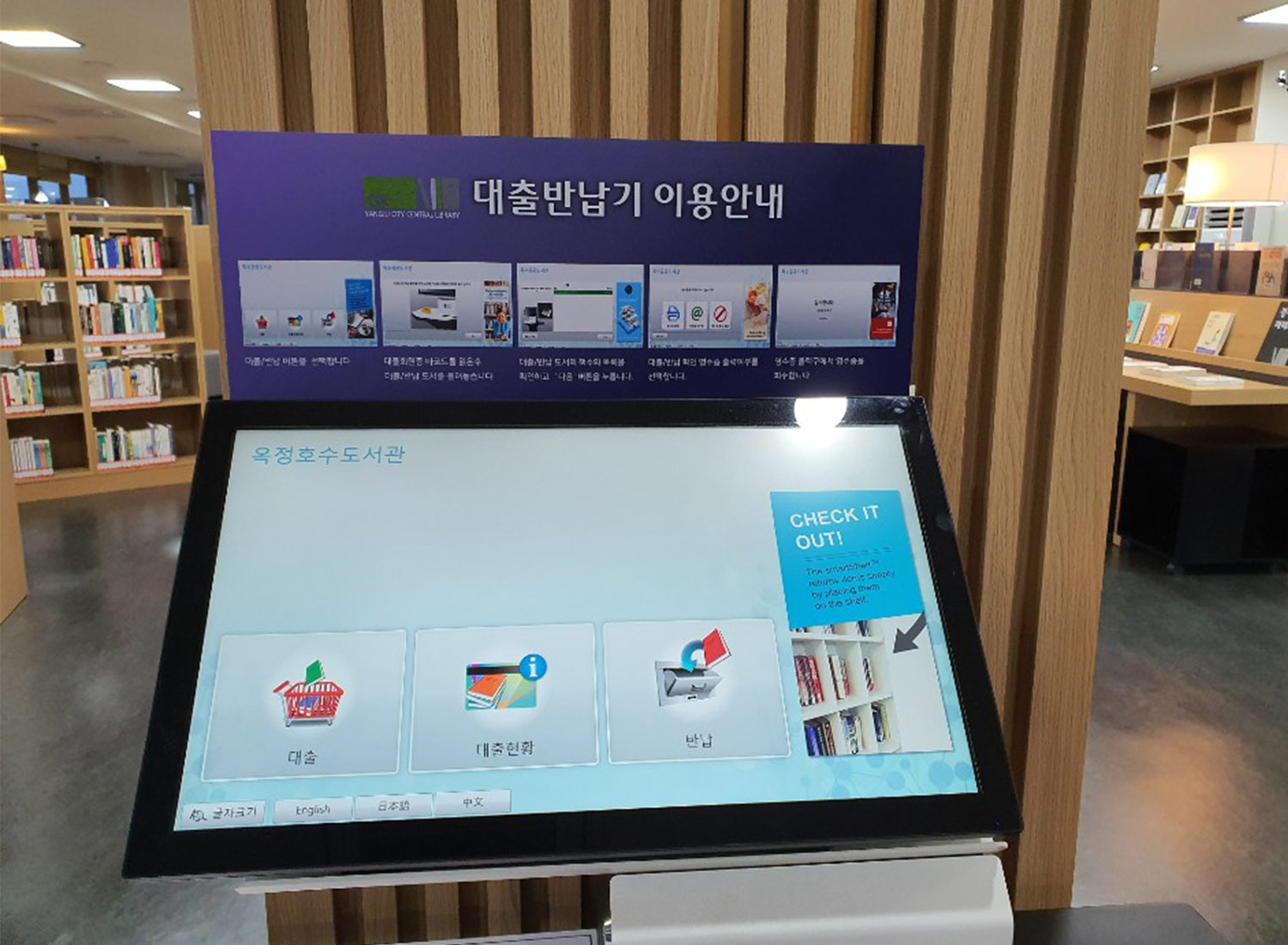옥정호수도서관은 문화적으로 경제적으로 소외된 지역민들이 많은 지역특성을 분석하여 도서관 공간을 누구나 언제나 편하게 찾아와 몸과 마음을 기댈 수 있는 공간이 되도록 하였고, 더 나아가 도서관에서 위로를 받는 따뜻한 공간을 추구하는게 공공 도서관이 나아가야 할 방향으로 제시하고 있습니다. 이에 도서관 사서들의 대출, 반납과 같은 단순반복 업무를 줄이기 위해서 RFID 기술을 이용한 대출, 반납 시스템은 물론 더 나아가 반납된 도서를 분류하는 시스템 도입은 당연한 선택이었습니다. 앞에서 언급한 바와 같이 도서관이 따뜻한 위로와 쉼터, 편하게 차 한잔 마시면서 책을 읽을 수 있는 공간이 되도록 도서관인테리어에 많은 심혈을 기울였고, 인테리어에 신중한 만큼 곳곳에 위치한 셀프서비스 장비 등이 차가운 기계 같은 이미지가 아닌 도서관 인테리어와 이질감없이 어울리는 장비선정이 매우 중요한 포인트가 되었고 이에 비블리오티카 셀프서비스 장비, 보안게이트 및 반납시스템의 선택은 당연한 것이었다고 옥정호수도서관 관계자는 전하고 있습니다.