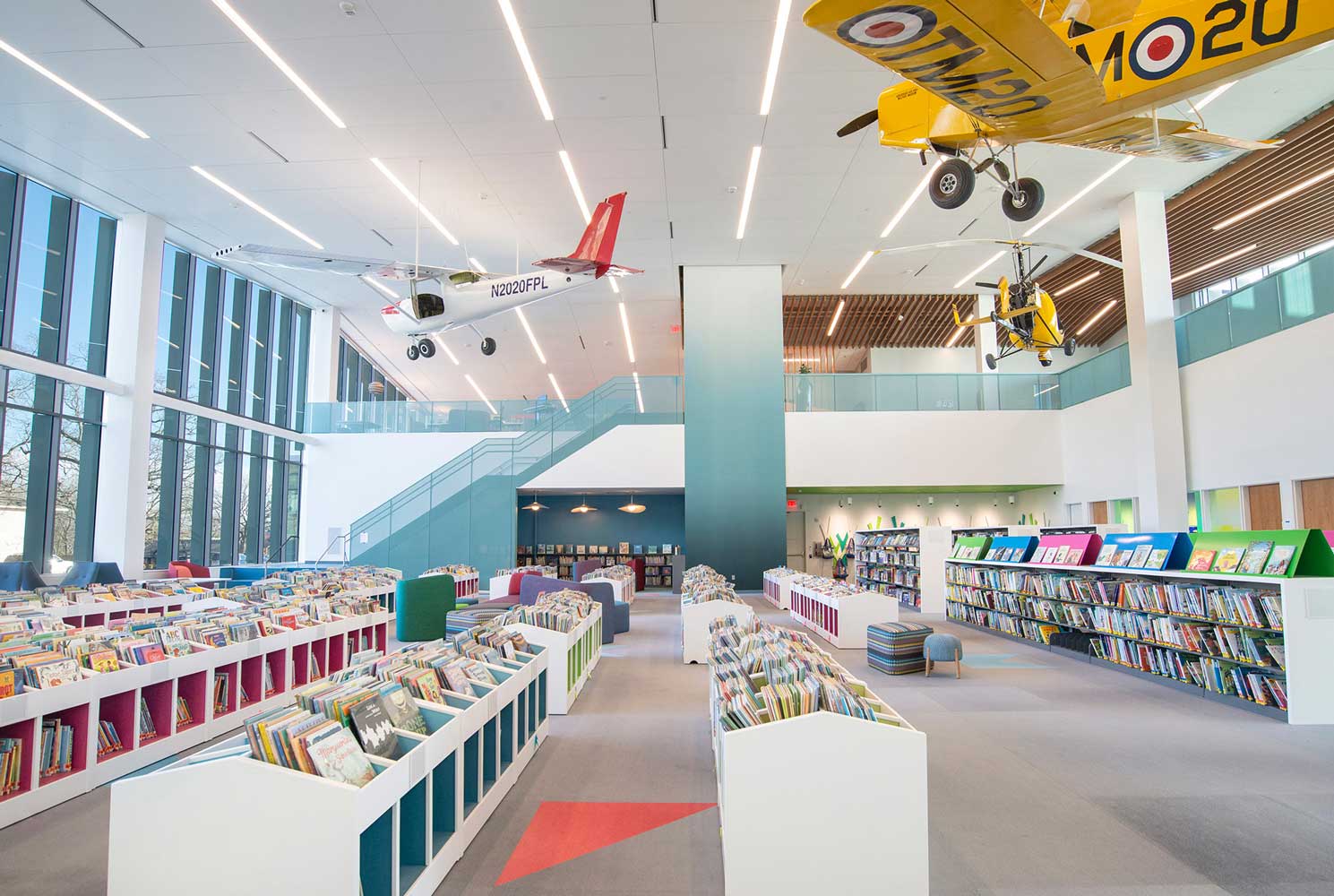 The library’s expansion was funded through public and private partnerships under the aptly named Beyond Words campaign. The new space includes a preschool library, a grade school library, and a teen area, complete with an increased collection. The new library facilities also include a teaching kitchen, a 700-person event space, and a Center for Innovation, which offers an audio recording studio, video production studio, photography studio, VR studio, makers’ space, and simulation lab.